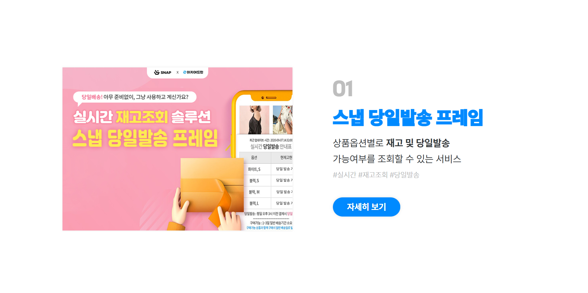 실시간 재고연동으로 쉽고 빠른 재고조정 서비스